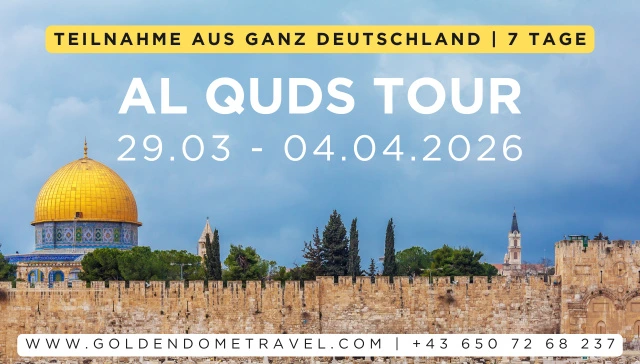 Erleben Sie eine unvergessliche Reise mit Golden Dome Travel! Diese Tour ermöglicht es jedem Teilnehmer, die faszinierenden historischen, kulturellen und religiösen Stätten des Islam zu erkunden. Ein besonderes Highlight ist der Besuch der Al-Aqsa. Begleitet werden Sie von einem erfahrenen, lokalen Guide, der Ihnen tiefe Einblicke in die Region bietet.